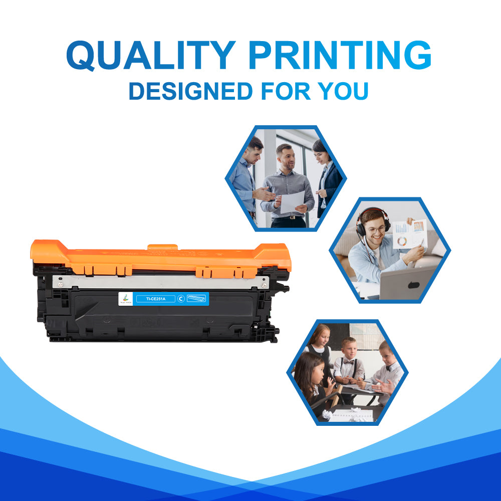 True Image CE251A cyan toner gir klarhet til alle blånyanser, fra himmelinspirerte pasteller til dype, oseaniske fargetoner. Den presise formelen sikrer livlige, naturtro cyantoner som får grafikker, logoer og utendørsscener til å fremstå autentisk.