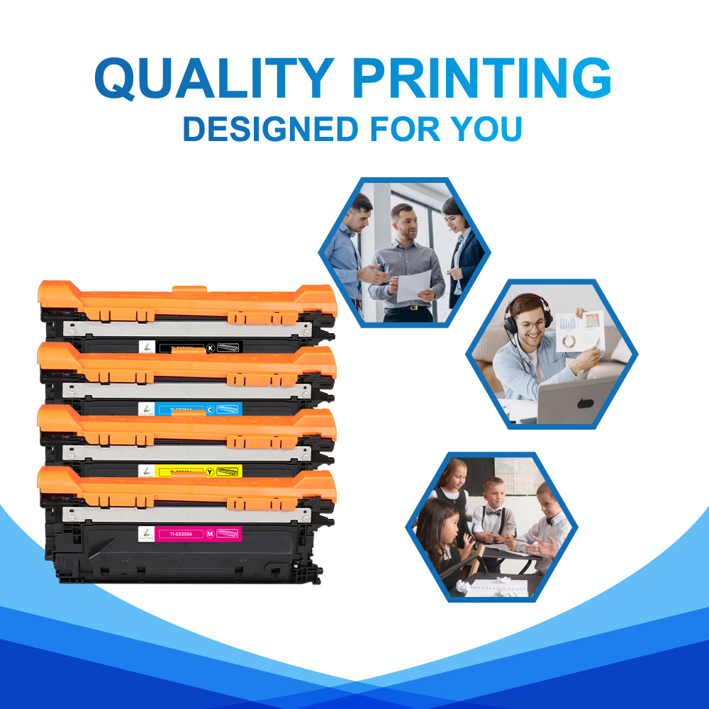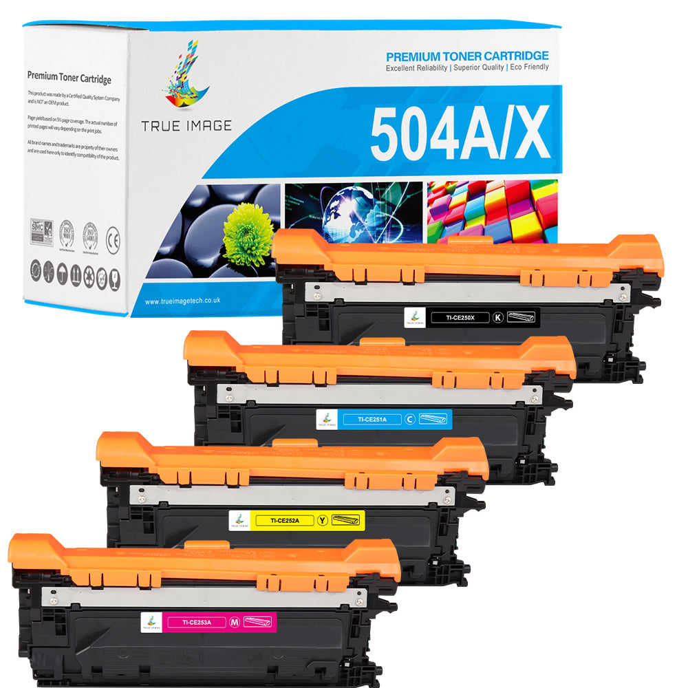 Våra kompatibla HP 504X/A tonerkassetter täcker dina behov av fyrfärgsutskrift helt och hållet, inklusive